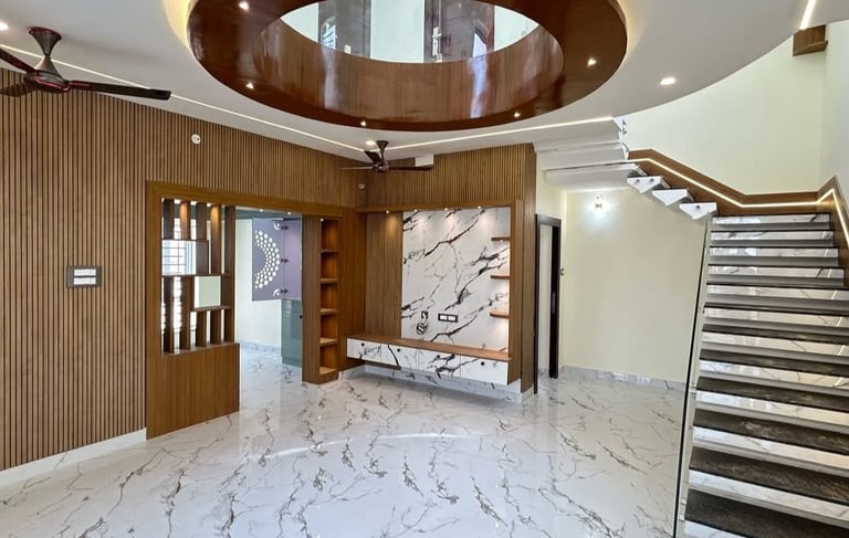 Mr. and Mrs. Sharma selected our Classic Living Package, a comprehensive solution that includes interiors, delivered at a competitive rate of ₹2350 per sq. ft.
